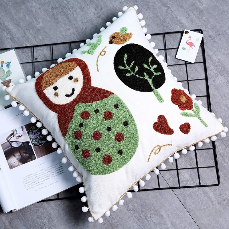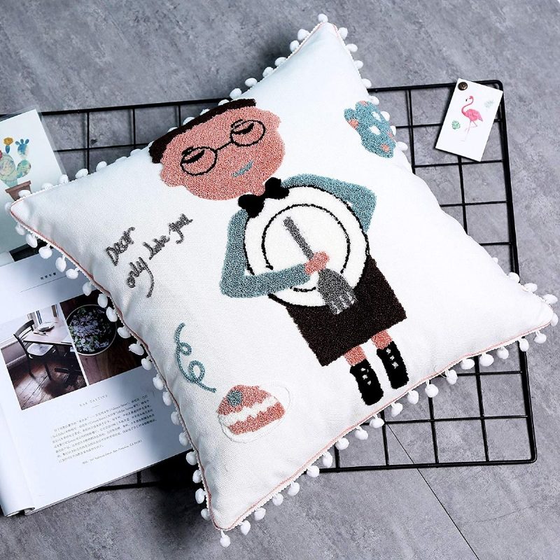 1 Ks Roztomilý Dizajnový Dekoratívny Poťah Plný Bielych Brmbolcov Na Vankúš Na Pohovku 18" X