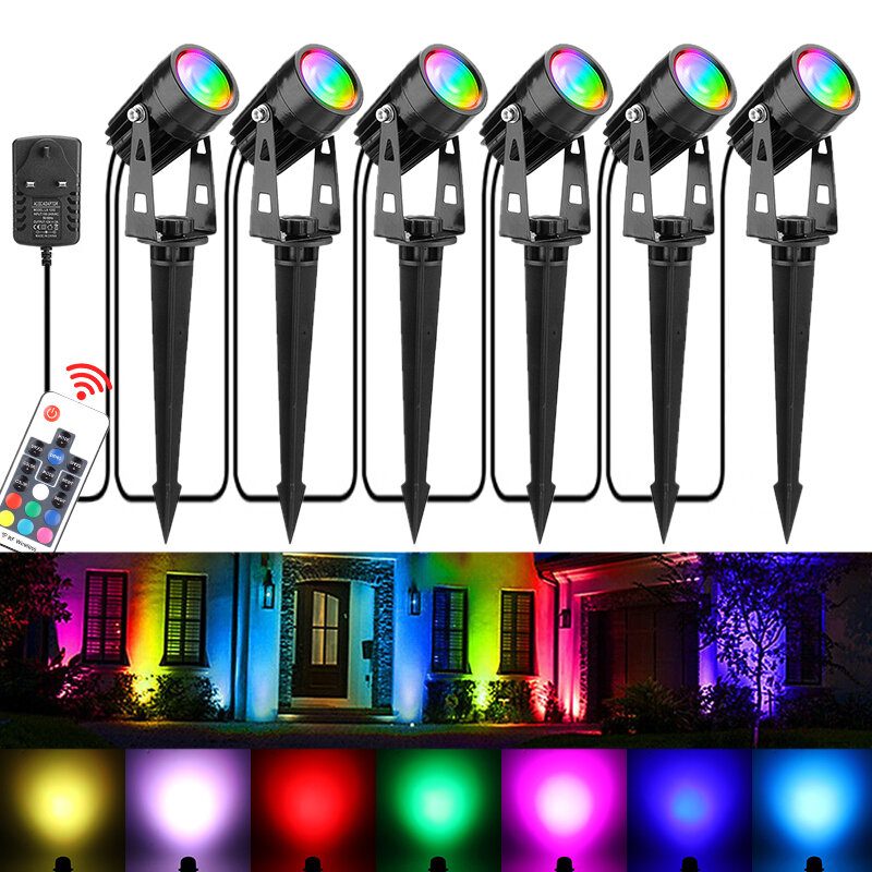 6 Ks Rgb Led Záhradné Bodové Svetlá Vonkajšie Reflektory Landscape Lamp Remote
