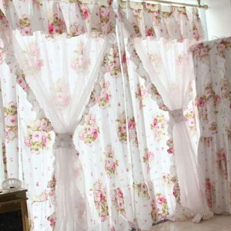 Bytový Textil Fadfaykórejské Čipkované Volánikové Závesy Do Spálne/obývačkyromantické Kvetinové Závesy2panels