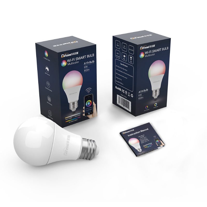 Difeisi Dfs-ac-0001 E26 9w Wifi A19 Rgb+cct Inteligentná Žiarovka 810lm Ac100-130v Funguje S Alexa A Google Assistant