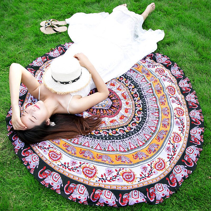 Honana Wx-92 150cm Bohémsky Tenký Šifón Plážová Osuška Mandala Okrúhla Hodvábna Šatka Posteľná Bielizeň Gobelínová Podložka