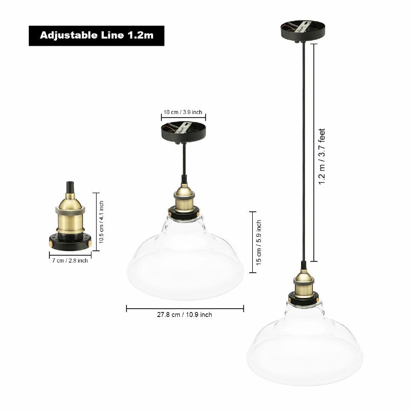 Kingso E27 220v Vintage Priemyselné Závesné Svetlo V Tvare Rohoviny Sklenené Tienidlo Bez Žiarovky