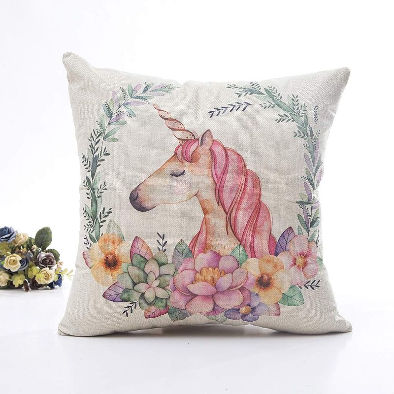 Kvetinová Obliečka Na Vankúš Jednorožec Obliečky Bavlnené Dekoratívne Na Súprava Vankúšov Na Domáce Pohovka Štvorcový Dizajn (18 X 18 Palcov)