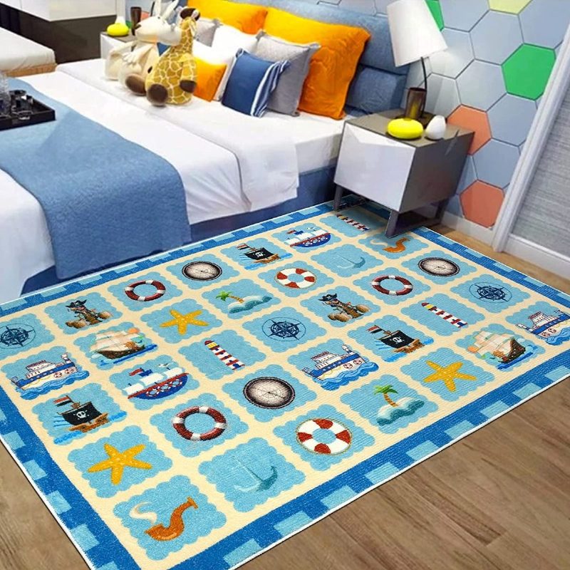 Modrý Námorný Oceán Detský Koberček Kotva Na Hviezdica Prvky Dizajnu Detská Izba Dekorácia Protišmykové Deti Koberec Do Detskej Spálne