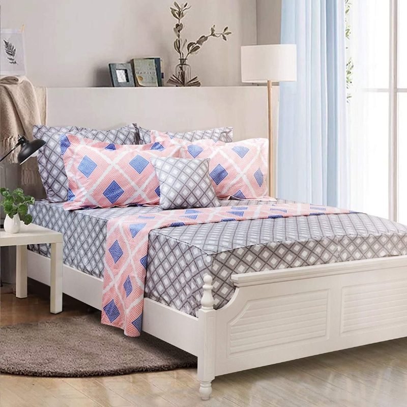 Súprava Obliečok Moderný Ružový Prúžok S Geometriou Modrého Diamantu 100% Bavlna Hypoalergénna Šedá Obliečka S Hlbokým Vreckom 4-dielna
