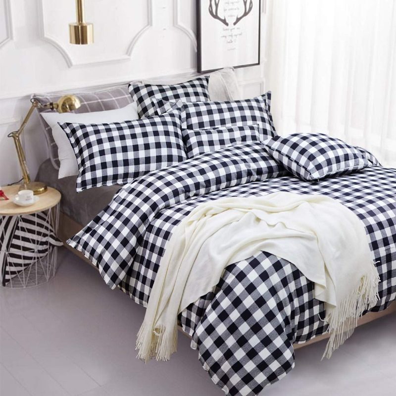 Súprava Obliečok Na Prikrývku Buffalo Kockovaná 100% Bavlna Hypoalergénne 3 Ks Čiernobiela Gingham Kockovaných Geometrických Károvaných