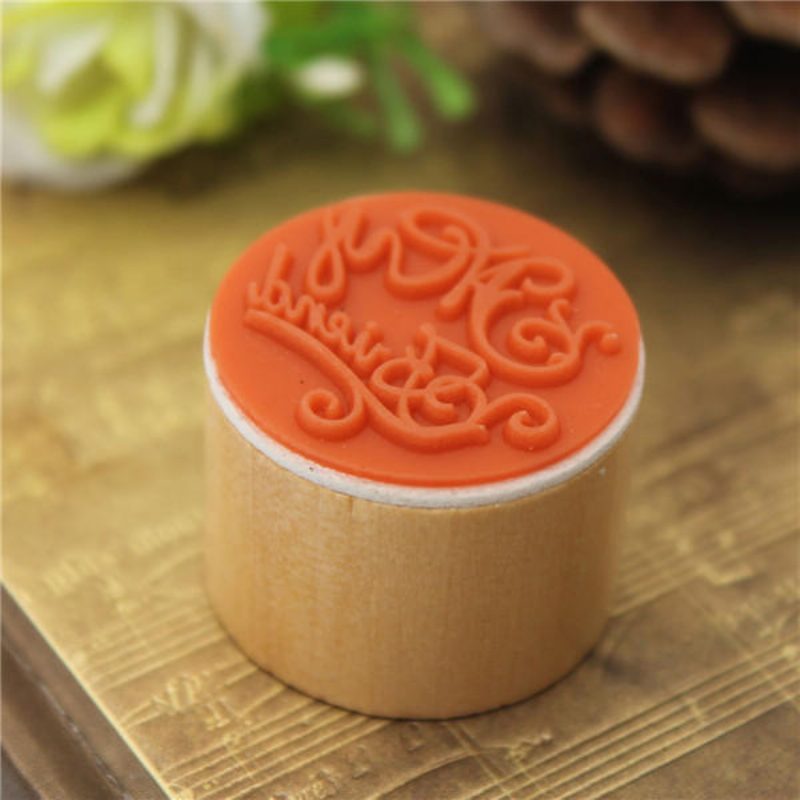 Drevené Okrúhle Rukopisné Želania Sentiment Slová Kvetinový Vzor Razítko